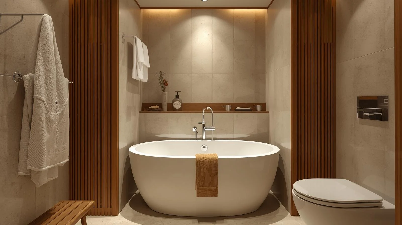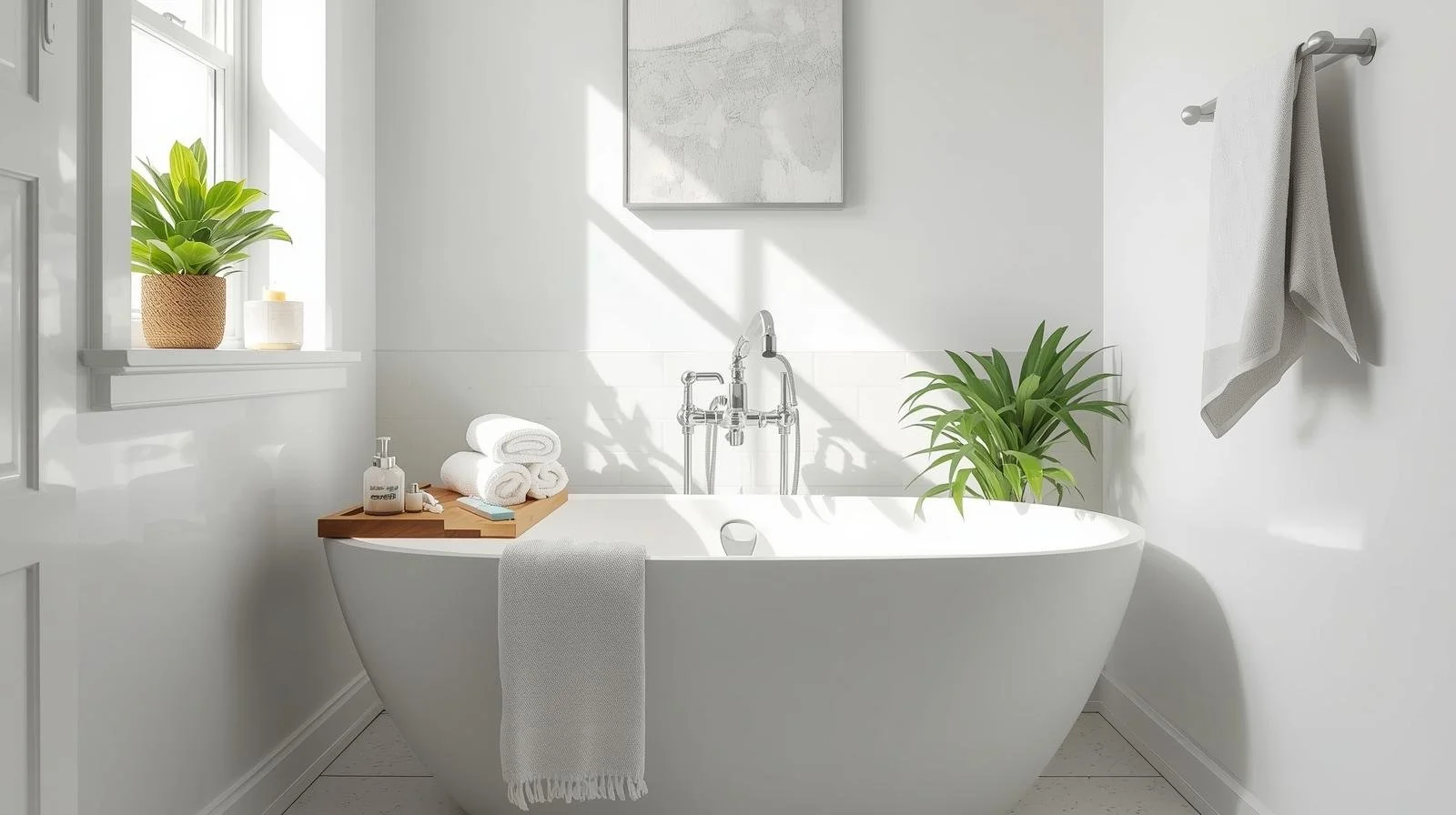Simple add-ons like a bamboo bath tray or tub pillow can make even a small tub feel like a spa.
