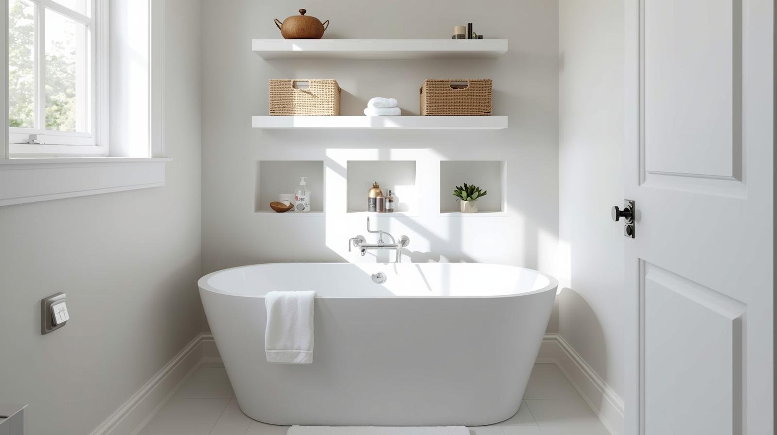 Contractor perspective: When we remodel, we often frame niches directly into the wall by the tub. It looks sleek and adds zero extra bulk.